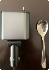 I thought it’d be bigger, but this charger is so small and handy! Even next to a spoon, it’s tiny. Don’t let the size fool you — it’s powerful and practical. The build feels premium and the voltage display is a plus.