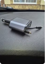 I hated the cable mess in my car, so this retractable charger was perfect. The design is compact and elegant, and the way the cords tuck in is super satisfying. I love the simplicity and how little space it takes.